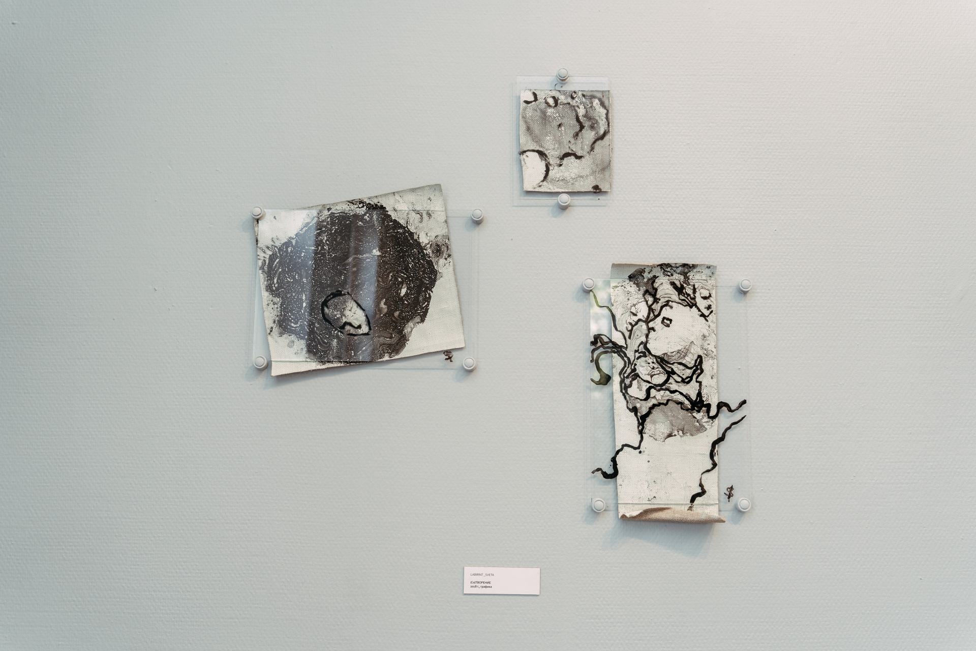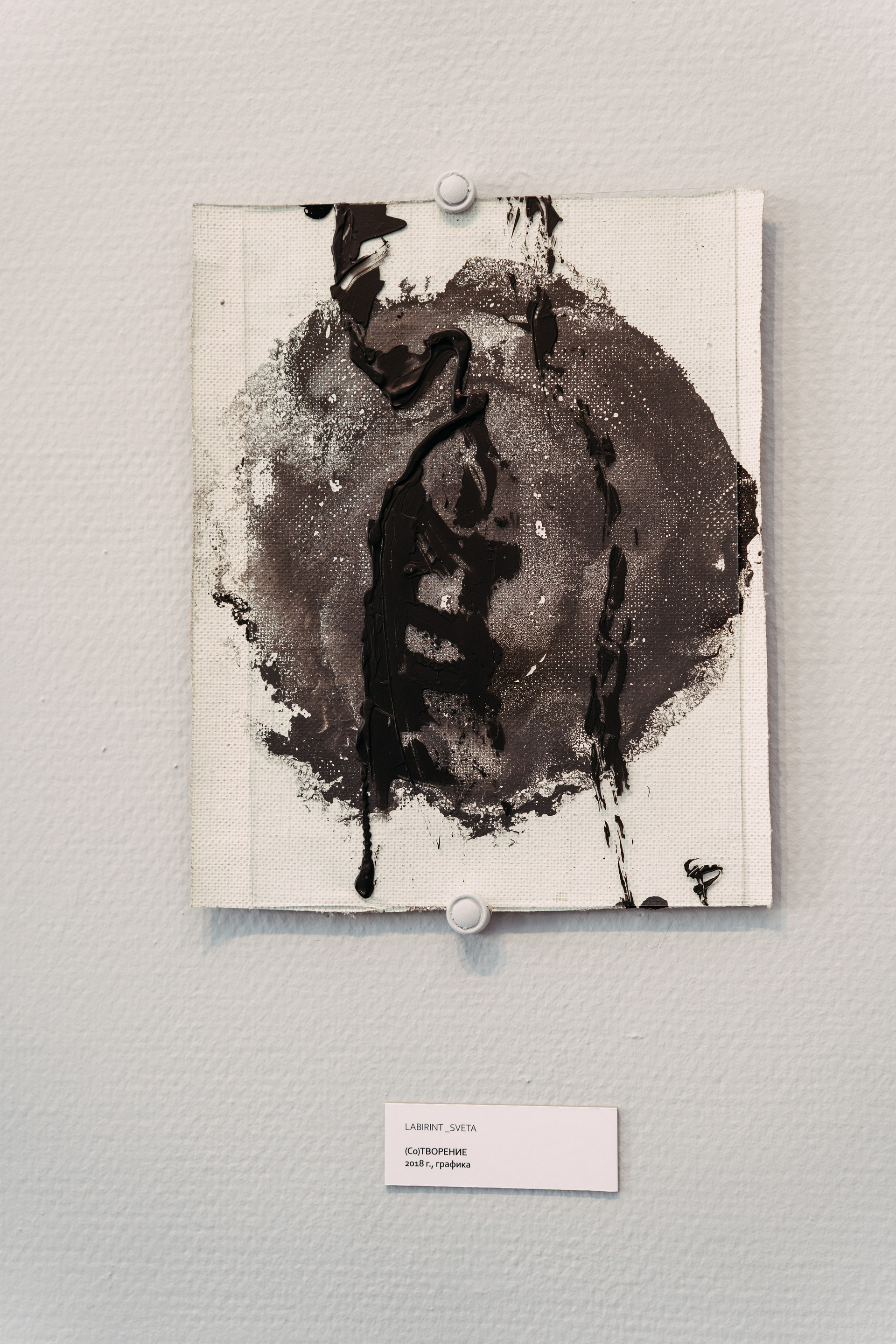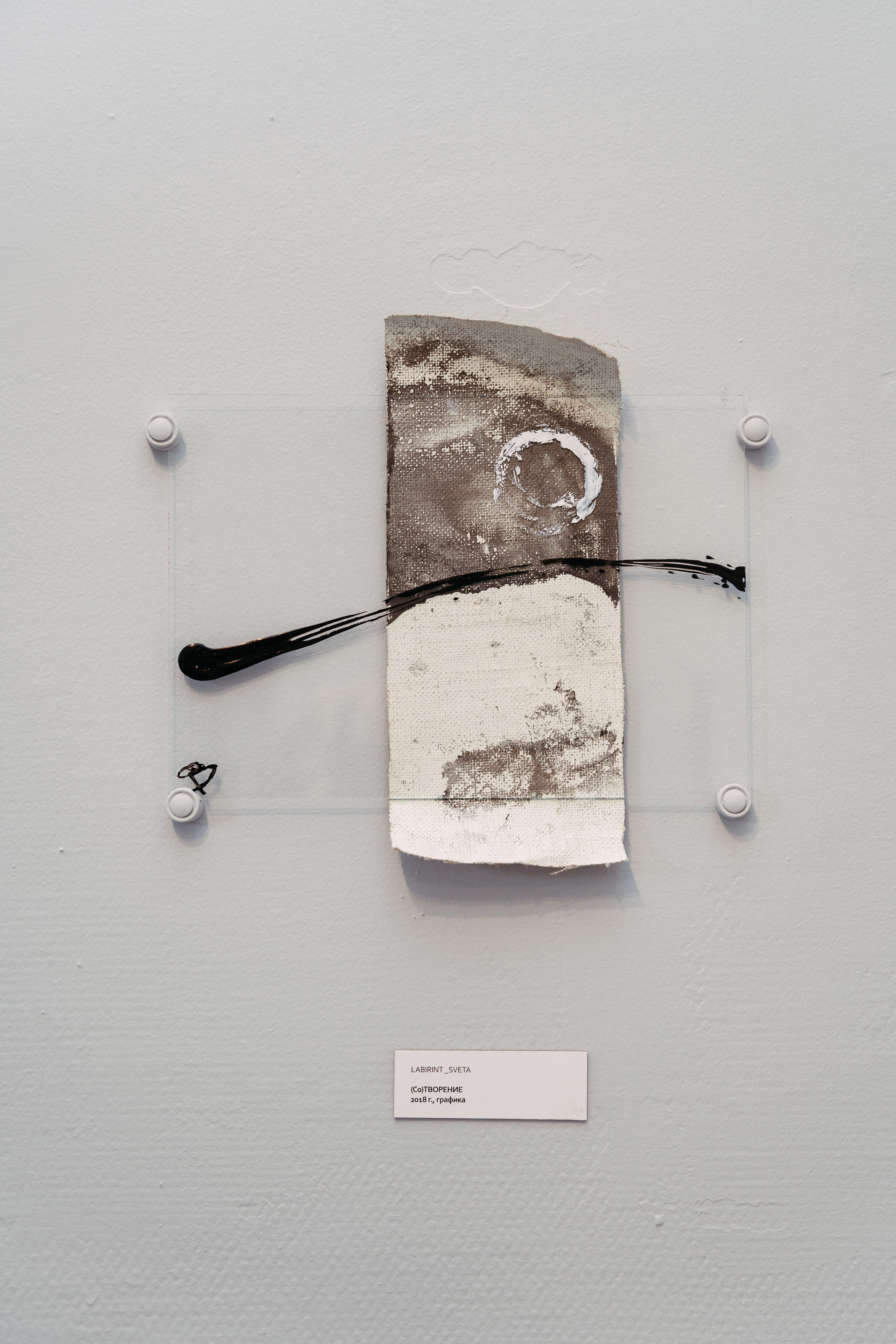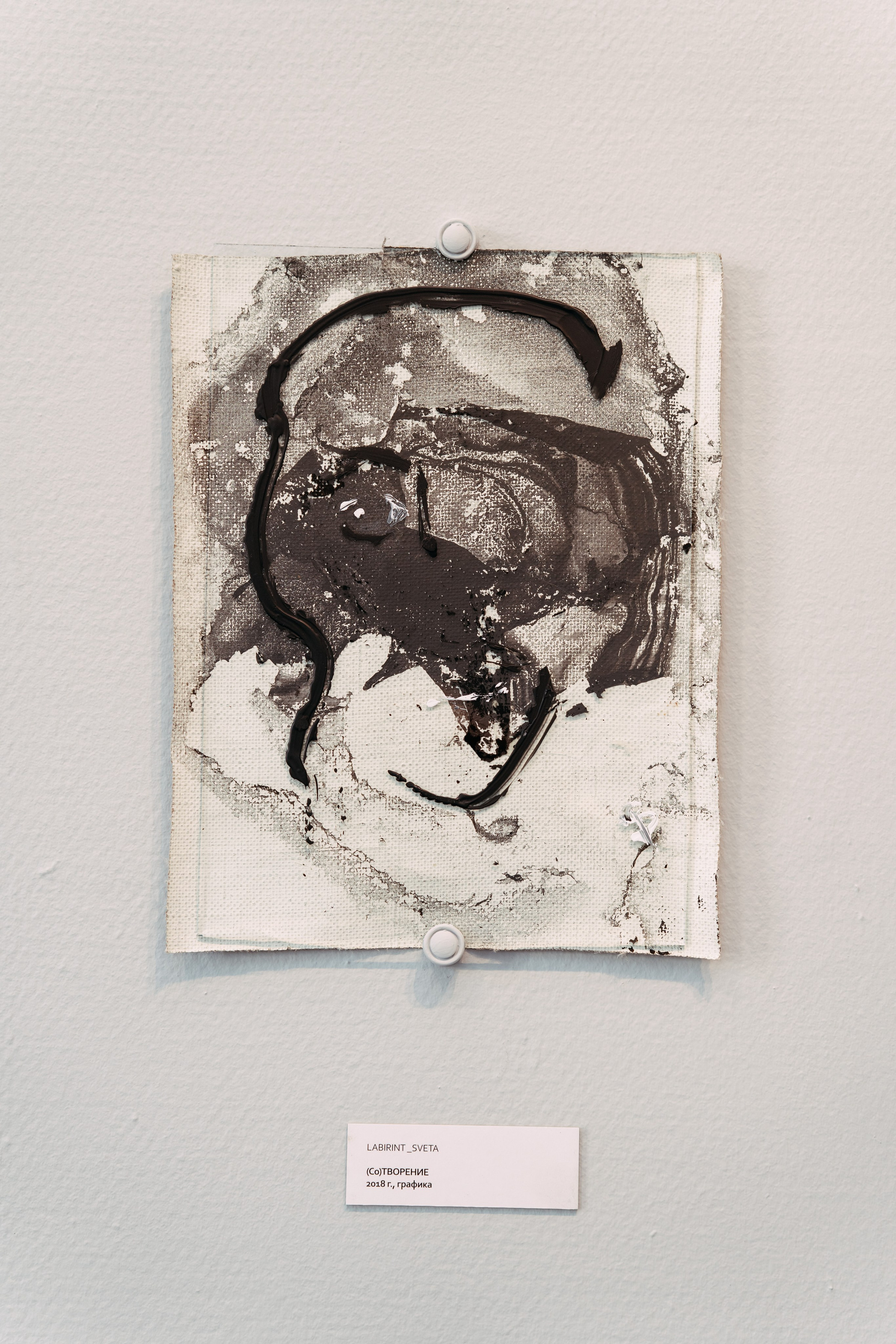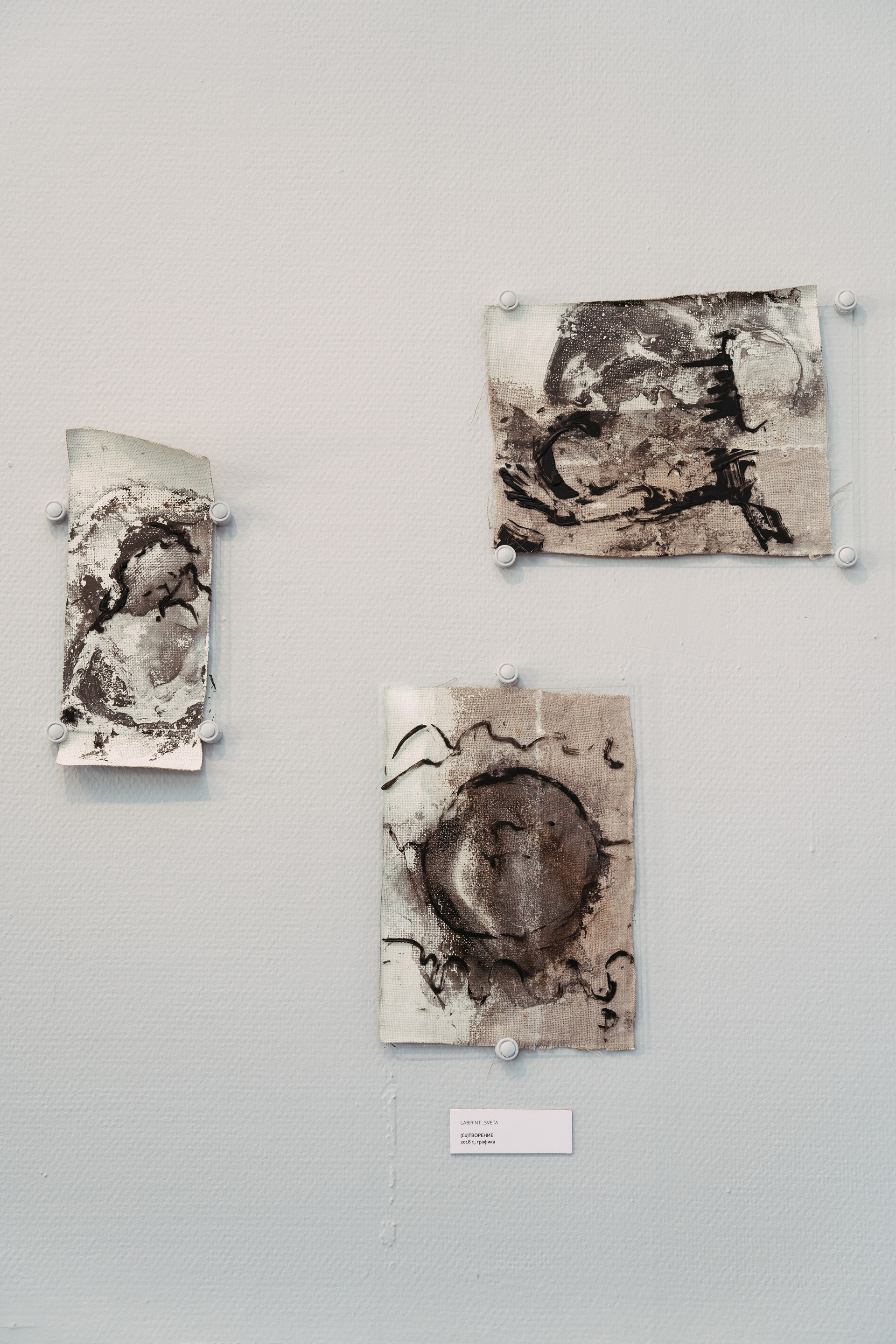 The process of Co-Creation is embodied in the materials and techniques chosen for this series: aged canvases, their grounds flaking and crumbling like the artist’s own strengths and vulnerabilities, now absorb abstract stains from the surface of water — revealing hidden forms and meanings as if drawn from the unseen. The paint does not impose; it responds. The canvas does not resist; it remembers. And in this quiet surrender, something greater than the artist emerges — not as control, but as revelation.